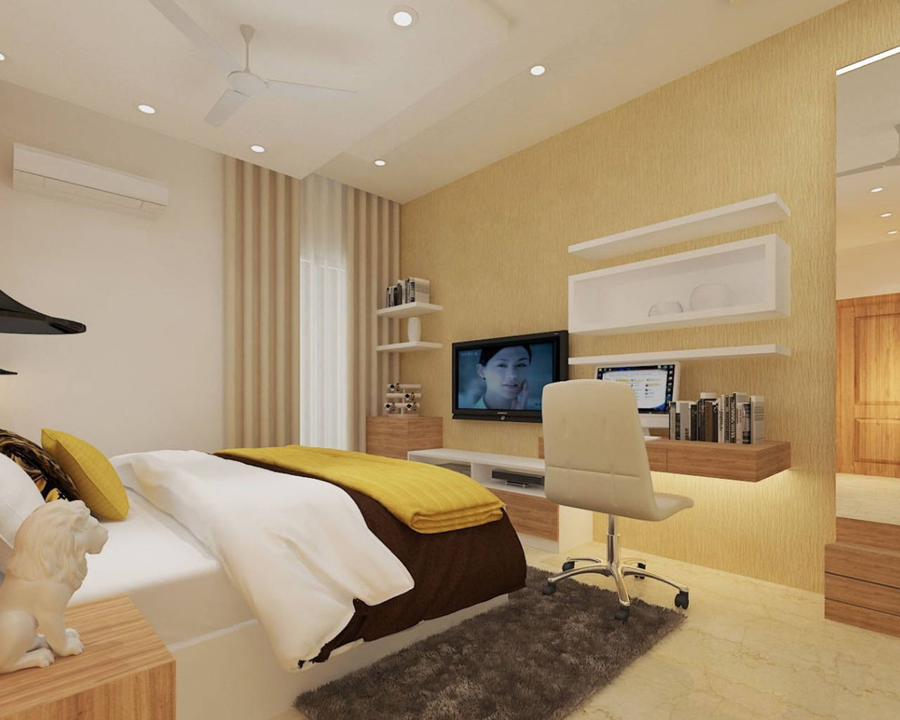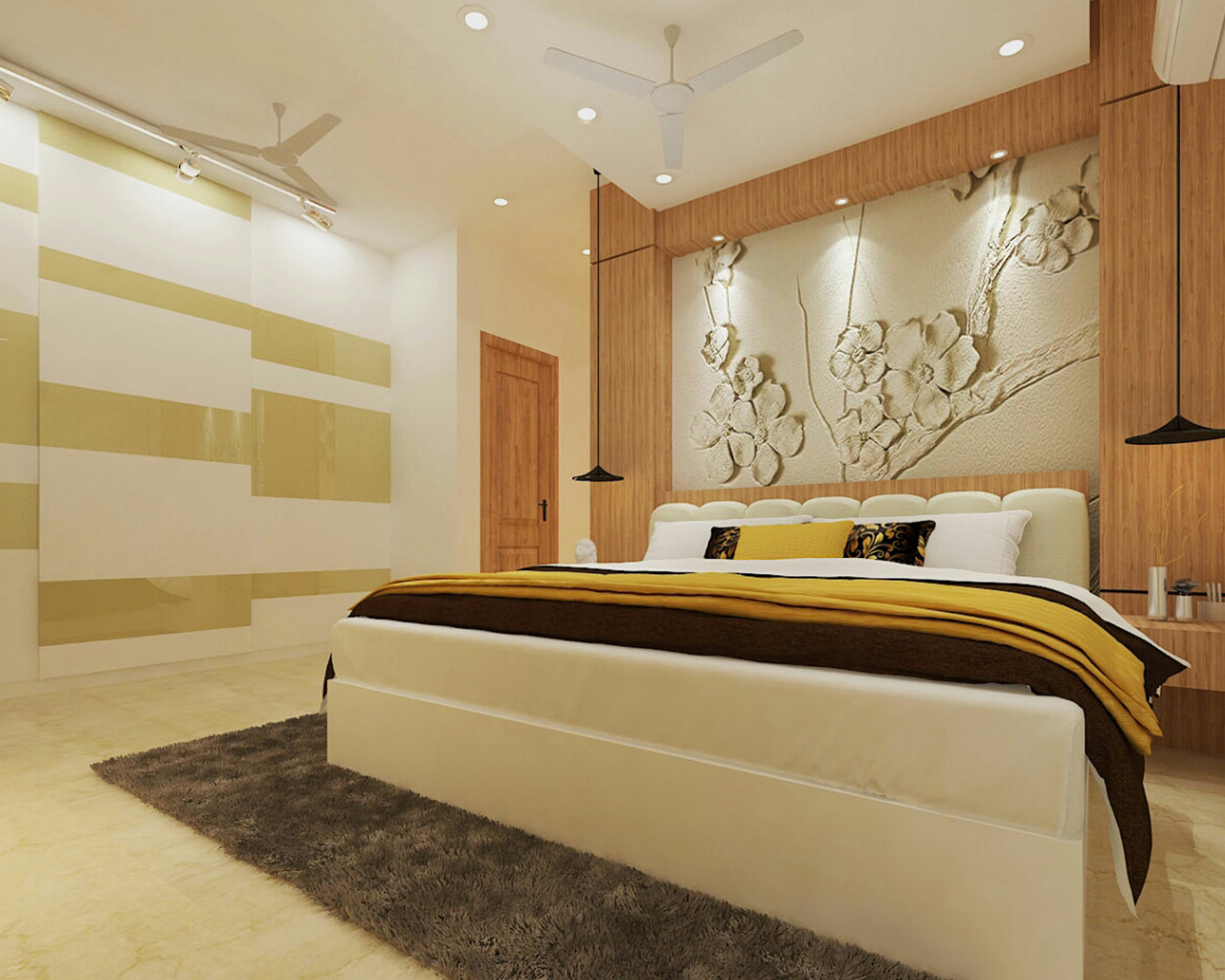 All bedrooms have wall panels and which enhance the room’s look and feel. The ceiling lights add a stylish touch, providing ambient lighting through recessed fixtures or Cove lights.